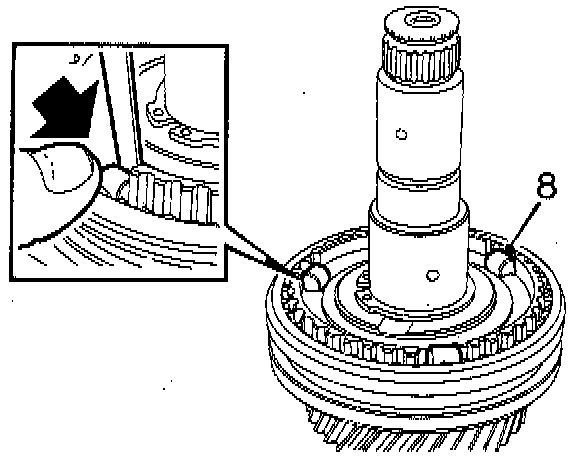 3. Insert the synchromesh hub, ensure that the hub goes down over the baulk ring.