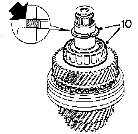 9. Install the 4th gear's baulk ring, needle bearing and pinion.