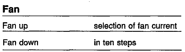 Each step corresponds to about 2 A. If the button is depressed for more than one second, fan speed will increase or decrease in steps automatically. The fan symbol and fan speed are shown on the display.