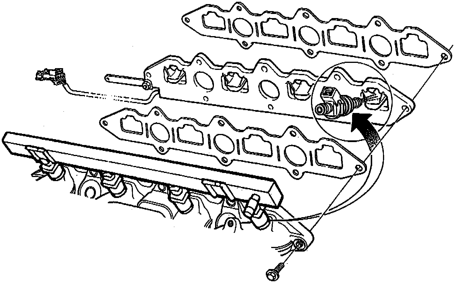 8. Disconnect engine temperature sensor electrical connector at intake manifold.
