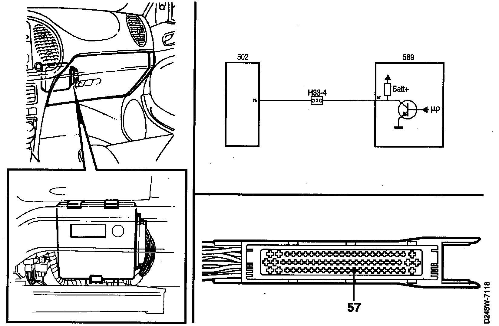 - Check the lead between pin 57 of the Trionic control module and pin 25 of the transmission control module for continuity.