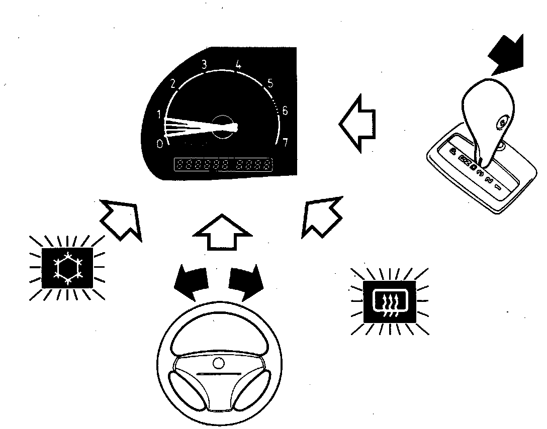 Idling speed drops drastically when the engine has to cope with a sudden load demand in connection with the engagement of high-current electrical equipment such as the A/C, ACC, power steering, electrically heated rear window or, on cars with automatic transmission, selection of a gear position.