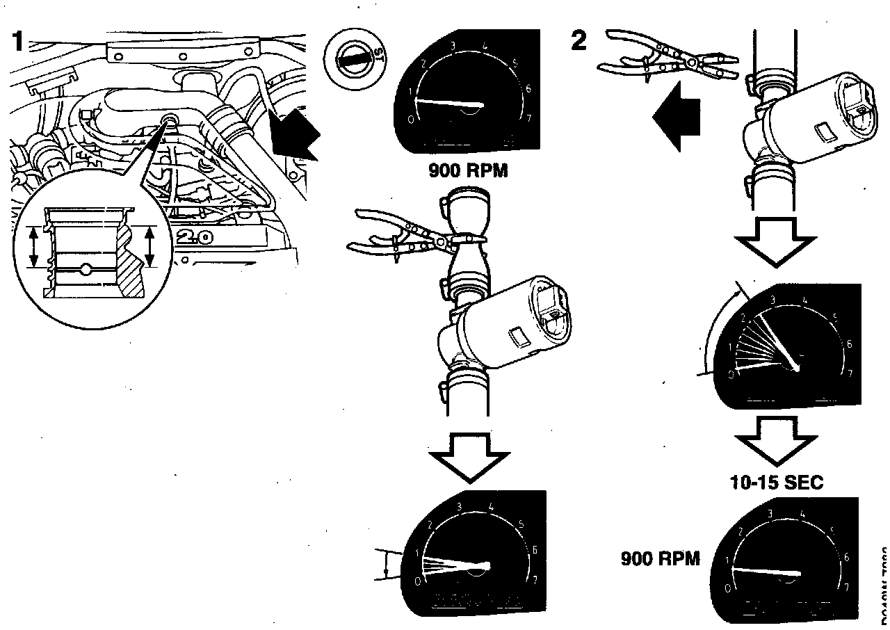 ^ Switch on the A/C and all electrical equipment. If the car has automatic transmission, select position D. Allow the engine to stabilize its idling speed for 10 sec.