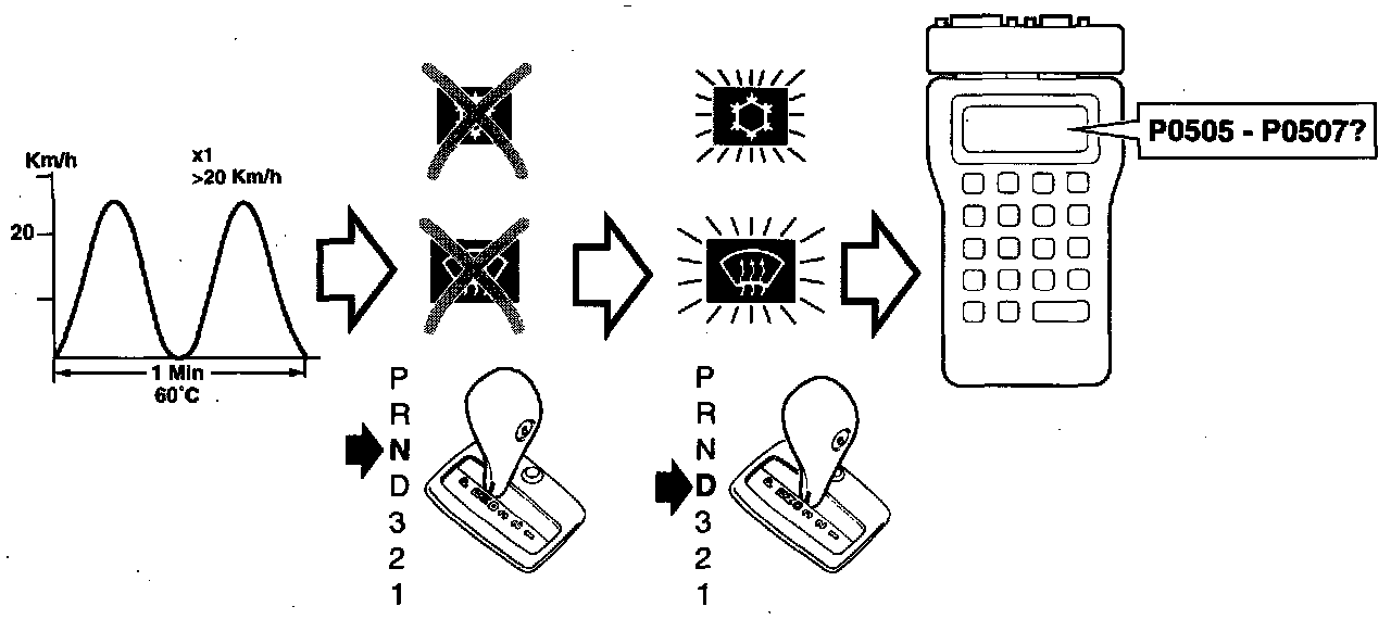 Evaluation of driving cycle: Check whether diagnostic trouble codes P0505-P0507 have been generated.
