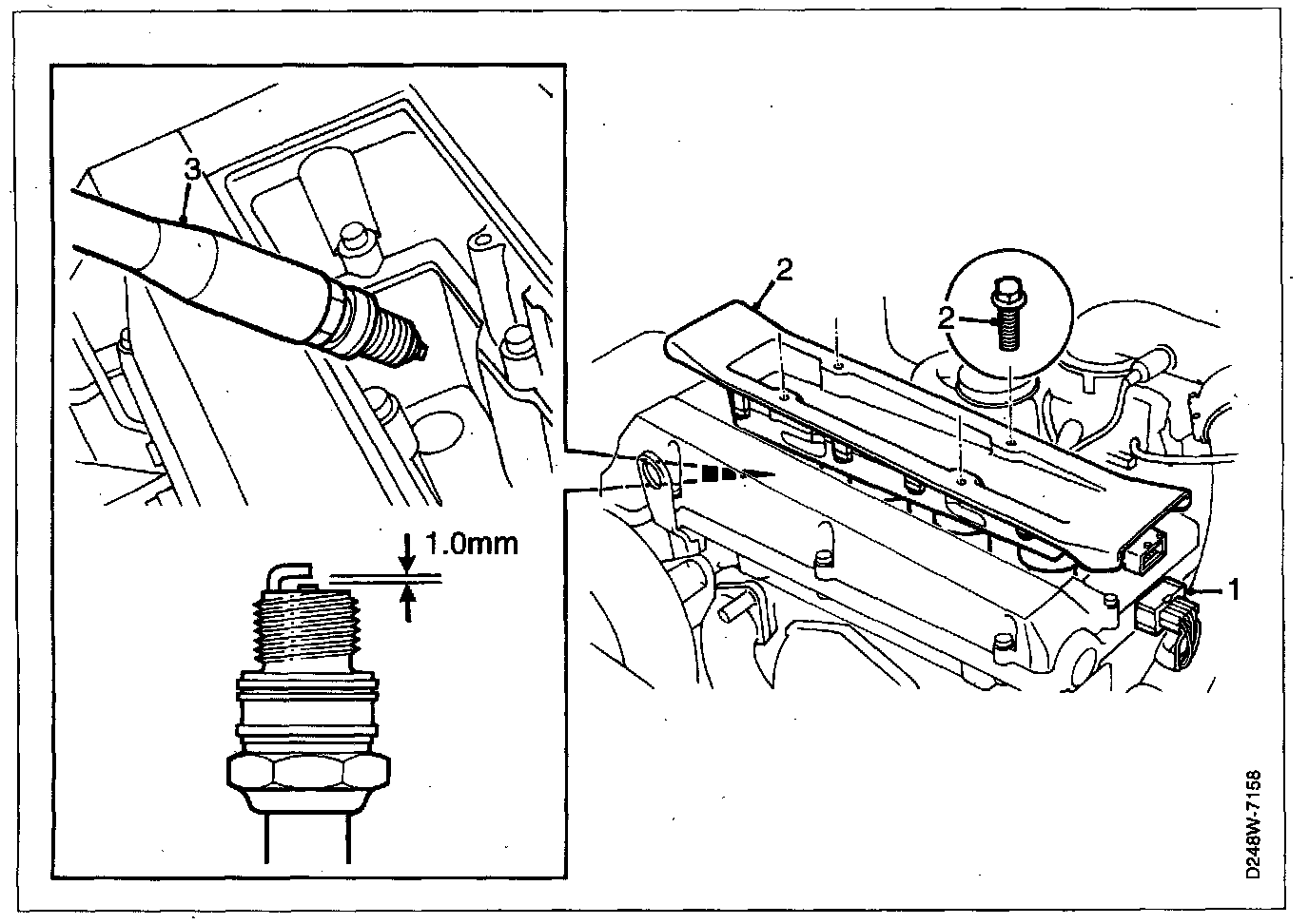 Check the electrode gap on all the spark plugs and adjust it if necessary. Install in reverse order.