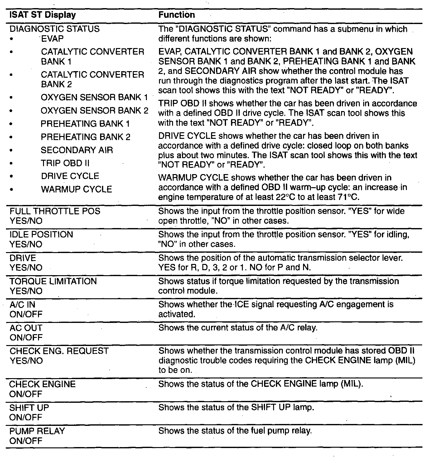 When the engine is switched off the control module stores the most recent value recorded. This value is displayed next time the ignition switch is turned to the ON position but it is not relevant for commands requiring the engine to be started. The ISAT scan tool will then display an incorrect value.