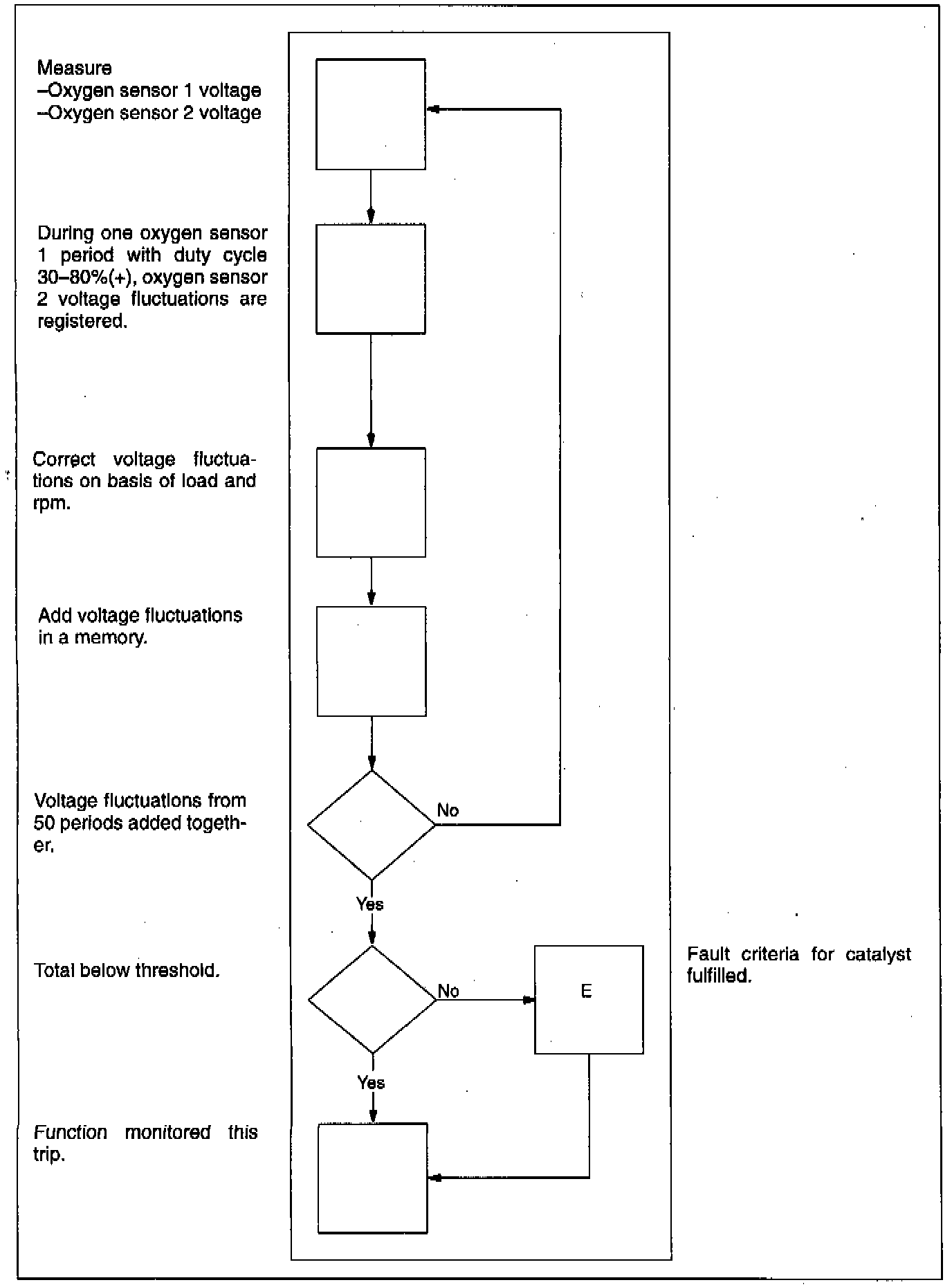 The voltage changes emanating from the rear heated oxygen sensor are corrected in regard to engine load and speed and totalled in 50 individual, approved periods for the front heated oxygen sensor *.