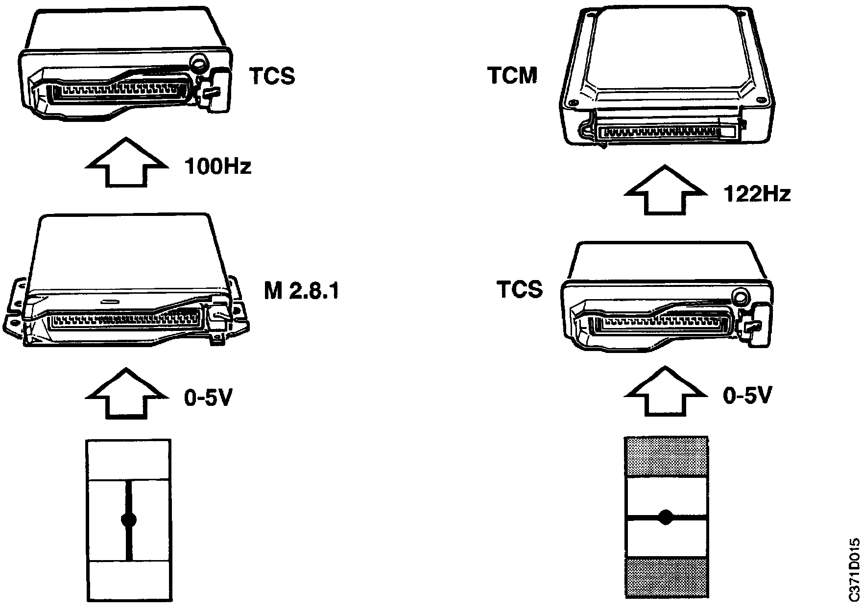 *) In exceptional cases the frequency is not fixed, such as the engine load (Tq) signal from the Trionic system, the frequency of which depends on engine speed but the pulse width reflects the engine load.