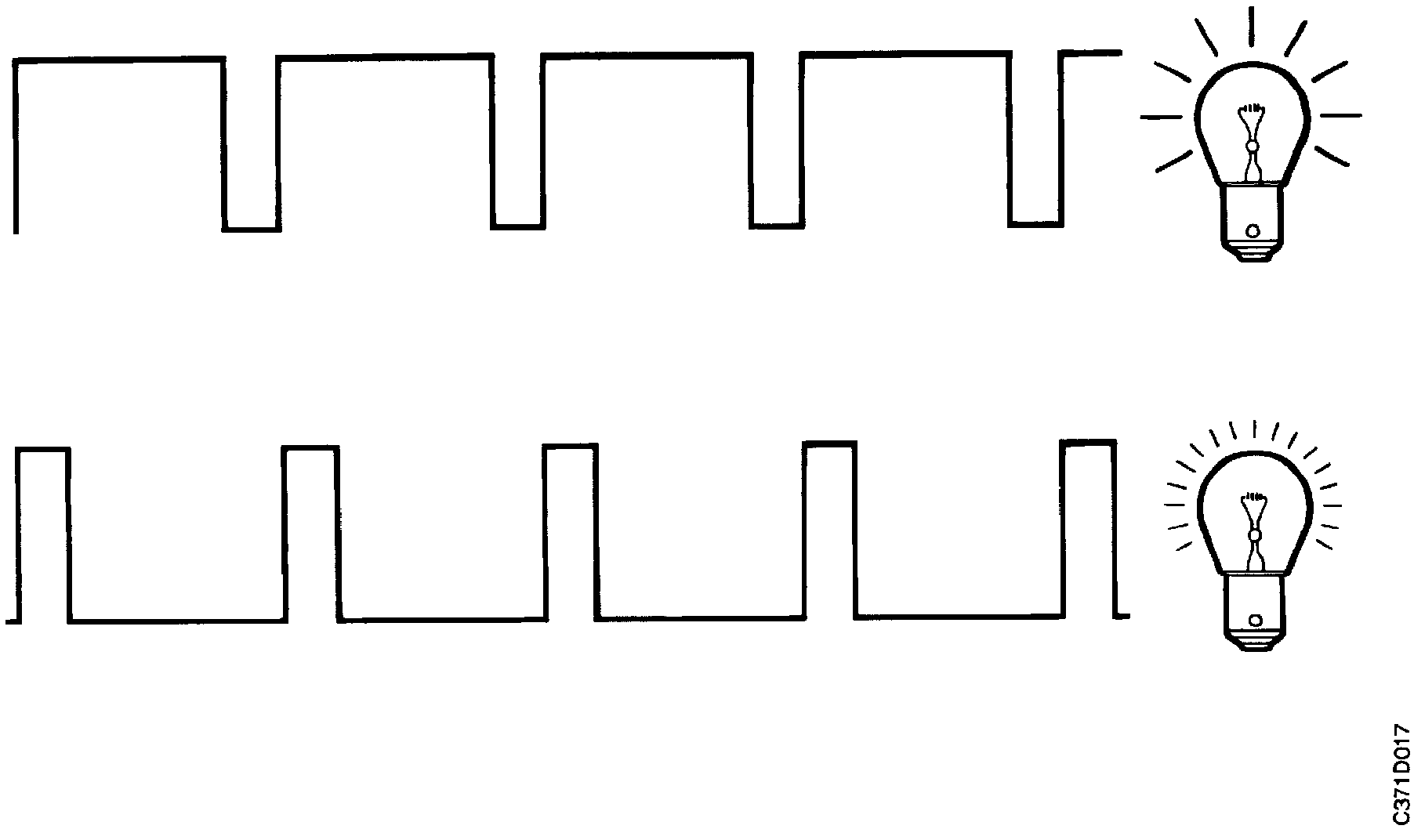 One example is the instrument lighting which is supplied with PWM voltage, where a low pulse ratio causes the lamps to shine dimly while a higher pulse ratio increases their brightness. Since the frequency is high, the eye cannot perceive that the lamps are "flashing".