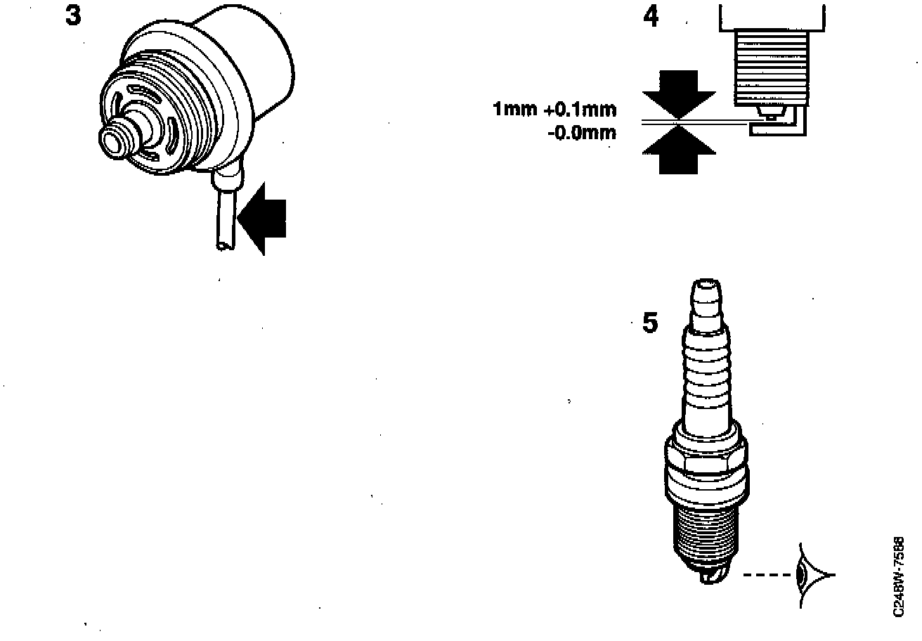 The spark plug gap should be 1.0+0.1 - 0.0 mm