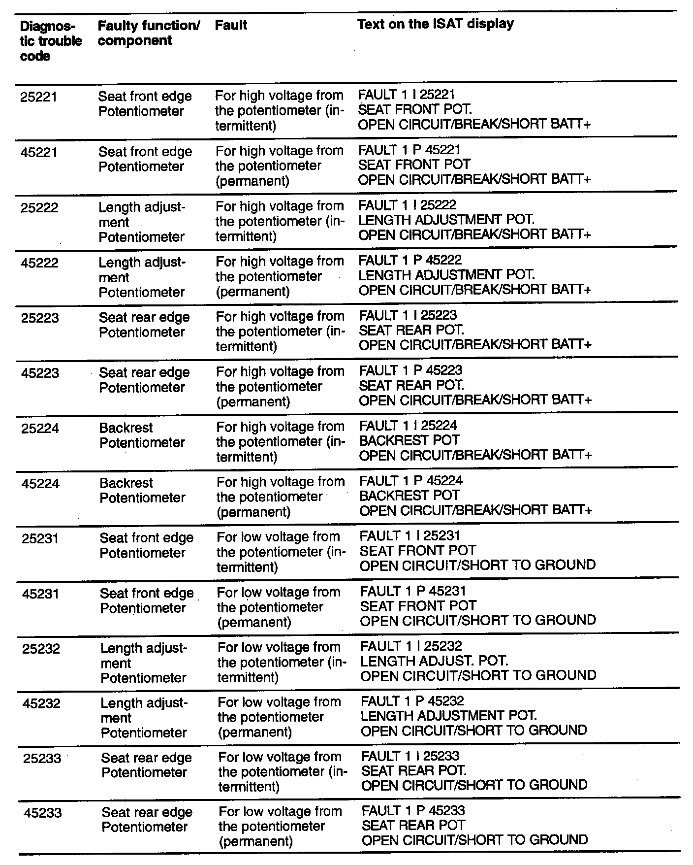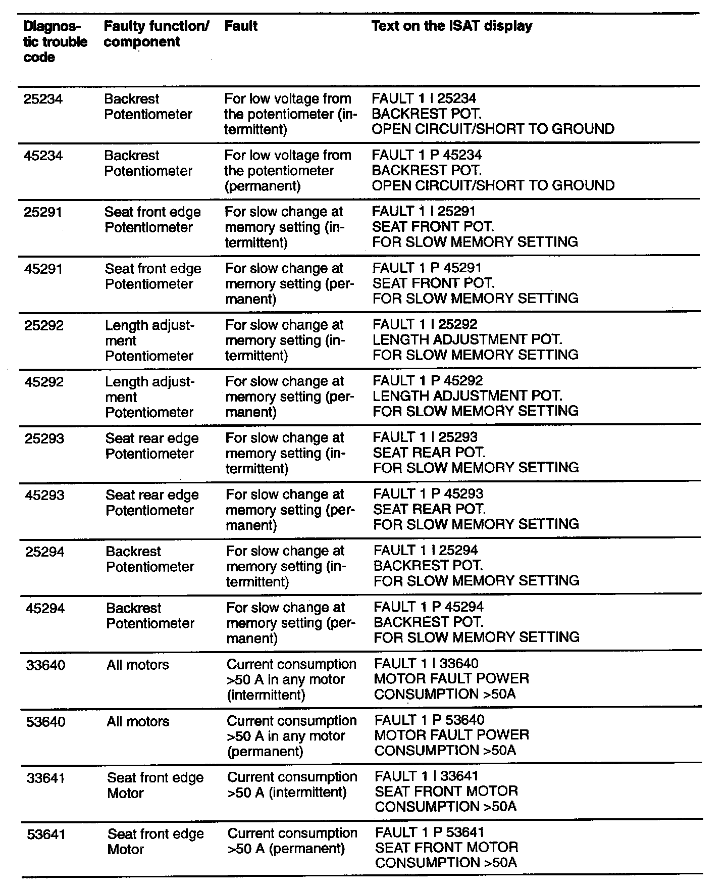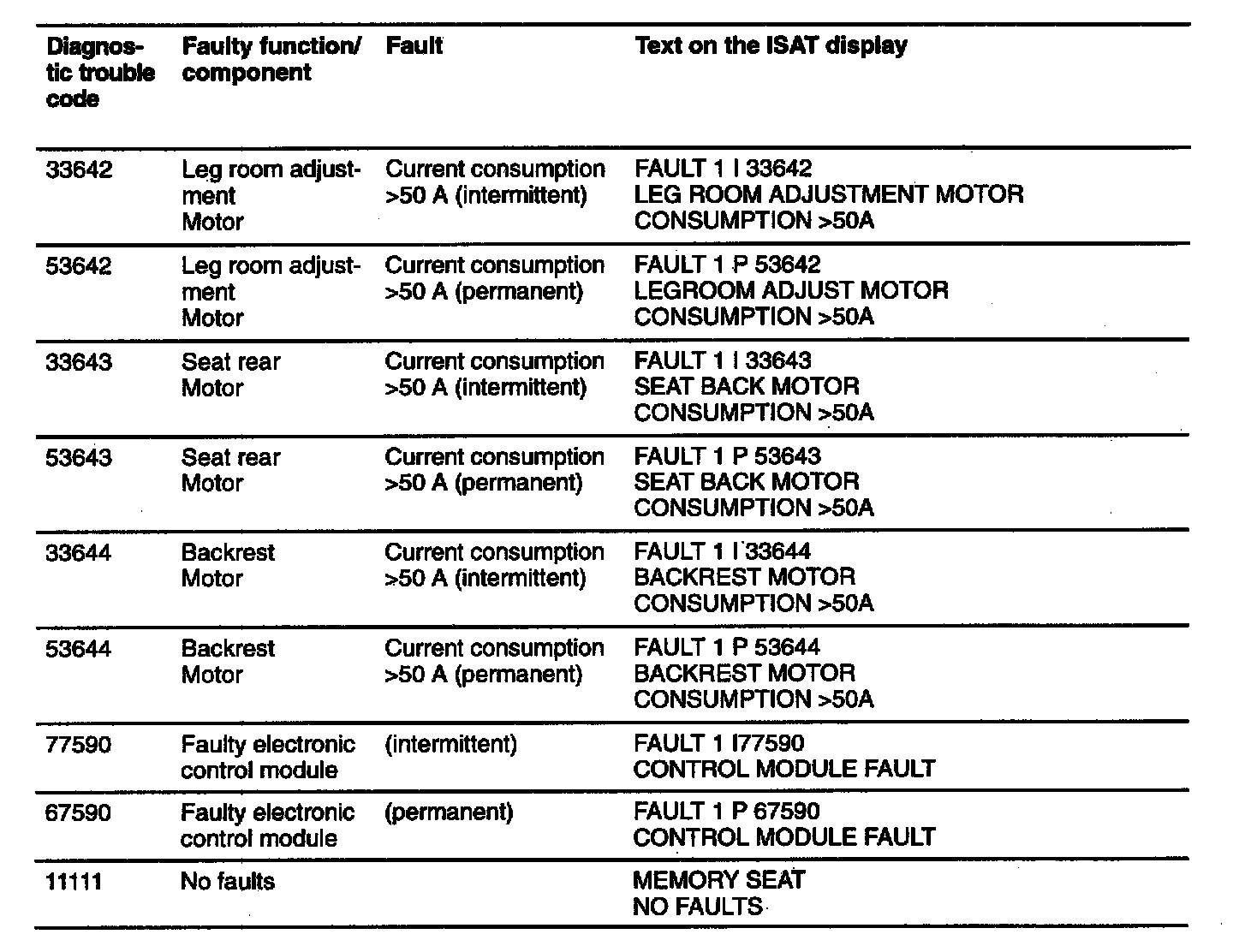 Diagnostic Trouble Codes, Electrically Operated Seat With Memory