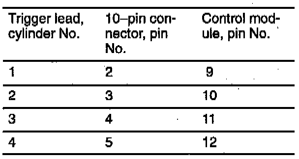 - Connect the test lamp to pin 10 and the trigger lead of the ignition coil in question, see table.