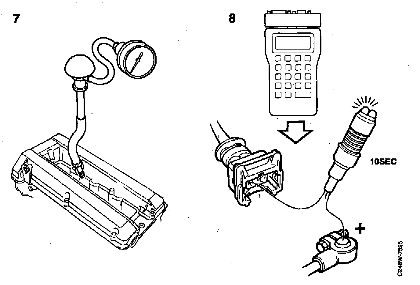 - Fit a test spark plug (part No. 86 11 386) in the relevant spark plug socket.