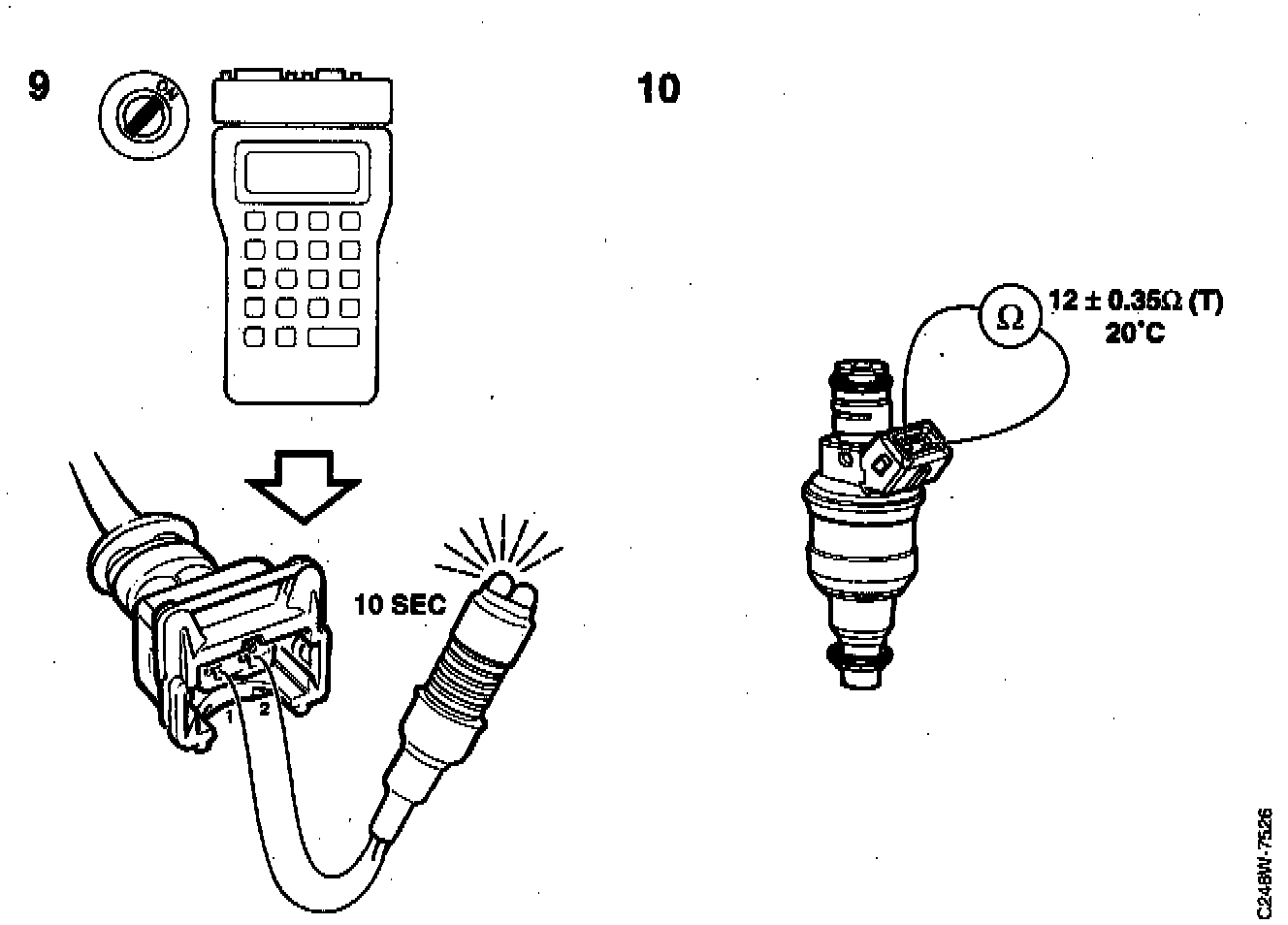 10. Check the resistance of the relevant injector