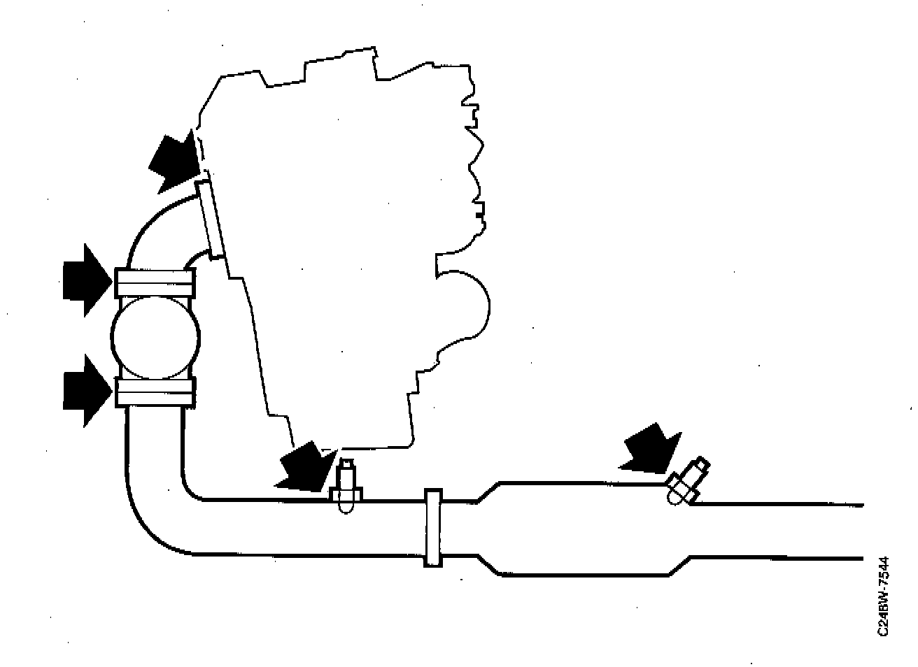 - Check the exhaust system for leakage between the engine and the rear heated oxygen sensor.