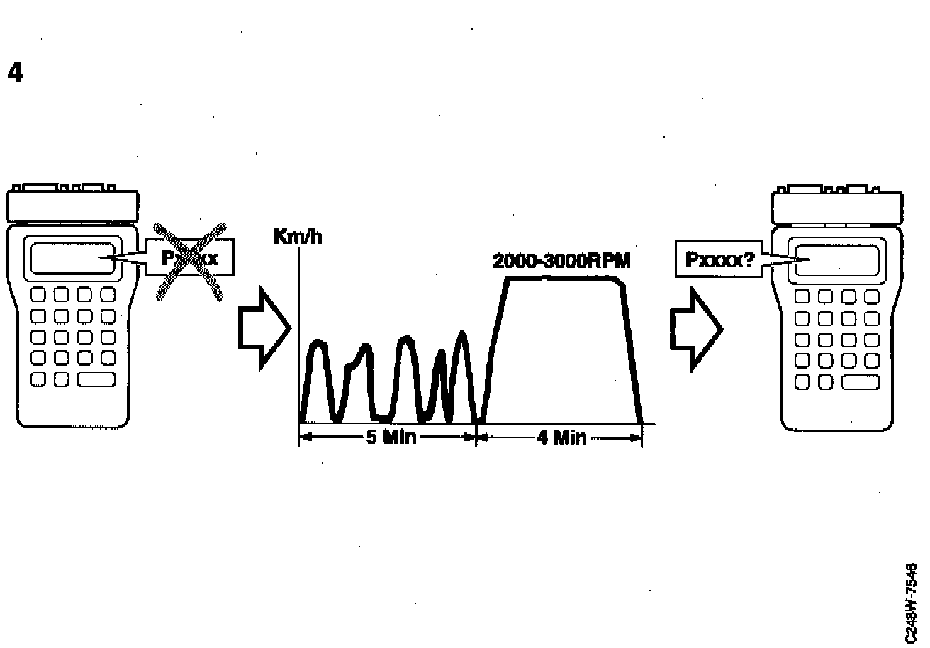 Drive the car with a steady throttle opening at 25-56 mph (40-90 km/h) for 4 minutes (select a gear that will keep engine speed at 2000-3000rpm).