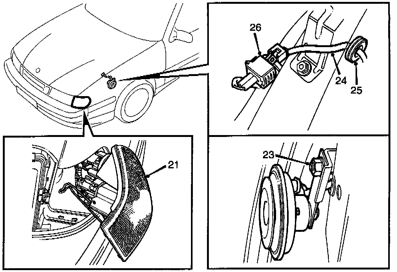 23 Install the horn with nut.