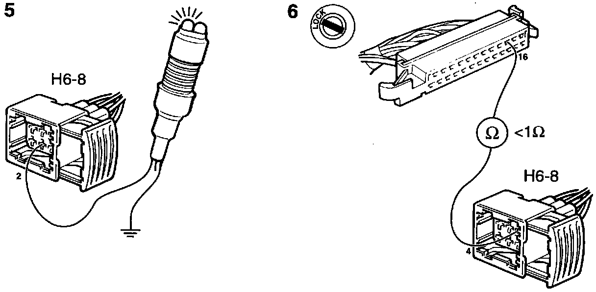 Connect the test lamp to pin 2 of connector H6-8 and a good grounding point.
