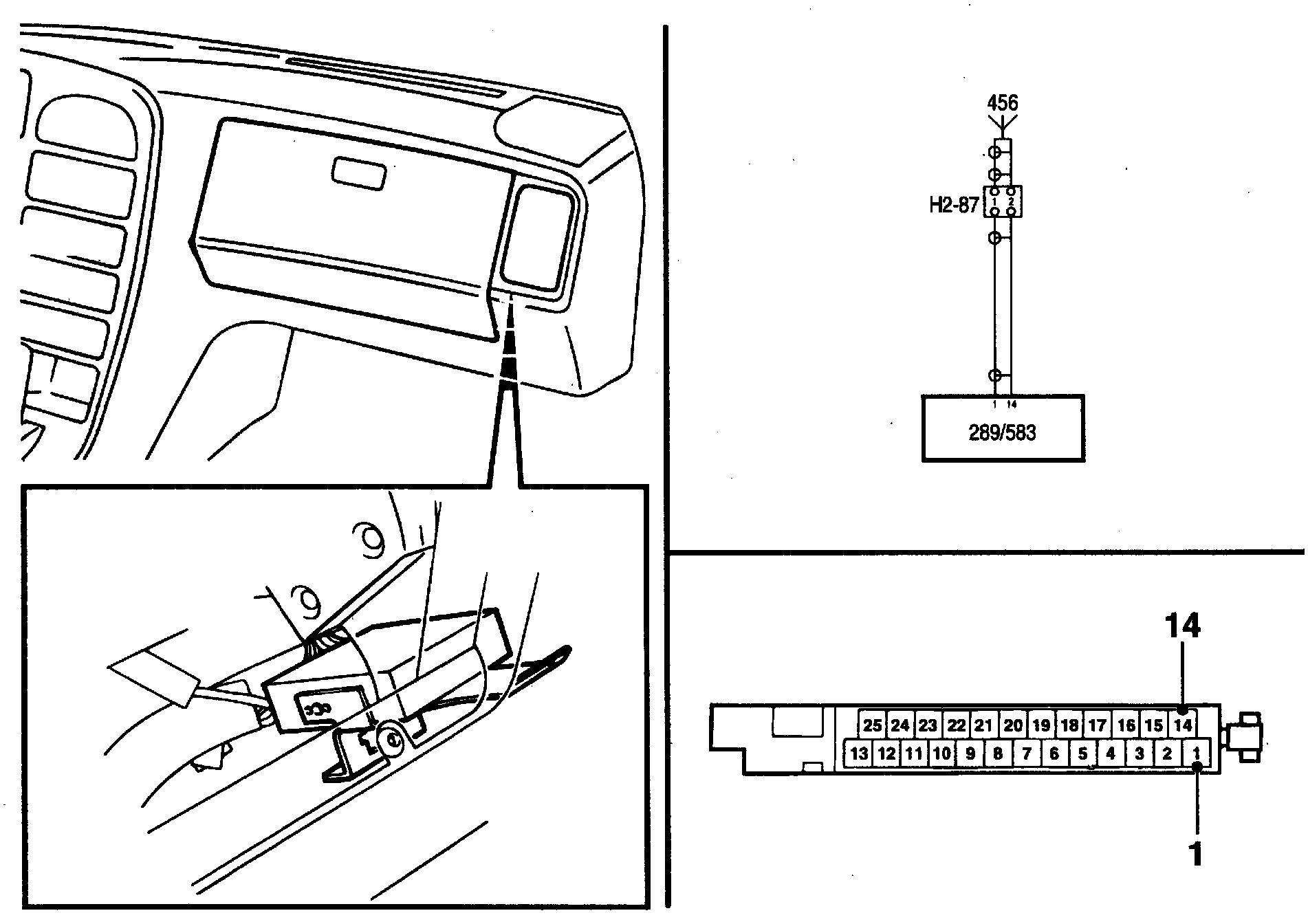 - Connector H2-87, pin 2, and the alarm control module, pin 14.