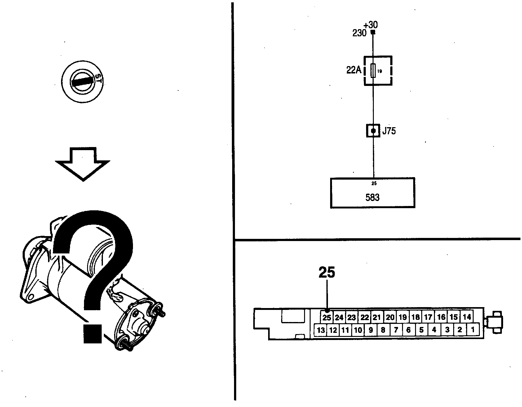 [NO] Change the fuse or continue fault diagnosis as described in Power and Ground Distribution/+30 power supply". Testing and Inspection
