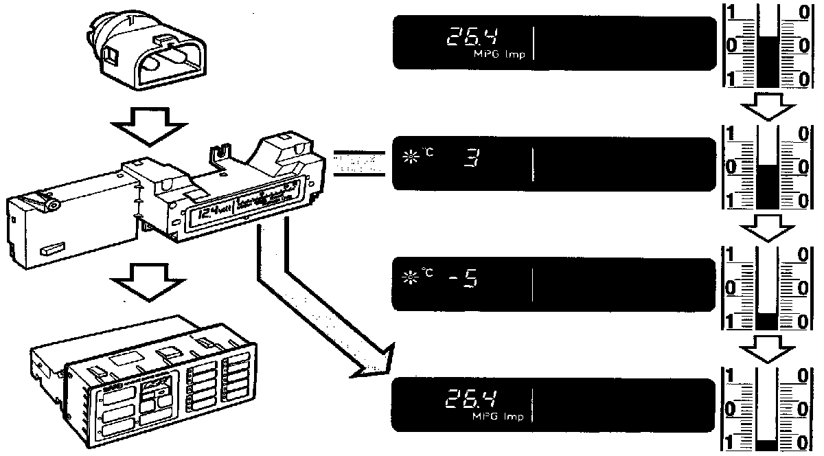 If the outside temperature drops from a higher temperature down to 3° C (37° F) or rises from a lower temperature to -3° C (26° F), the outside temperature will automatically be shown on the display irrespective of which display the Electronic Display Unit (EDU) control module is set to.