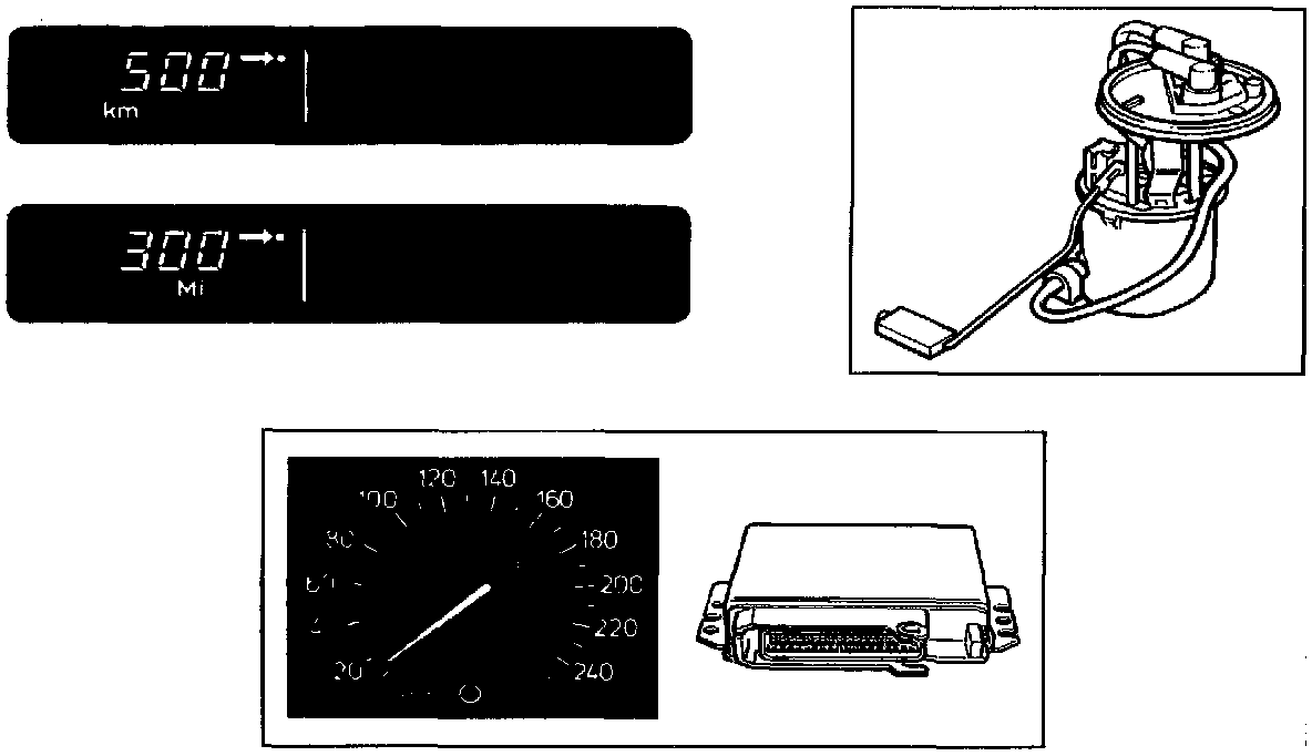 To calculate how far the car can be driven with the quantity of fuel remaining in the tank, the control module uses both information on the quantity of fuel in the tank and the average fuel consumption during the last 20 minutes.