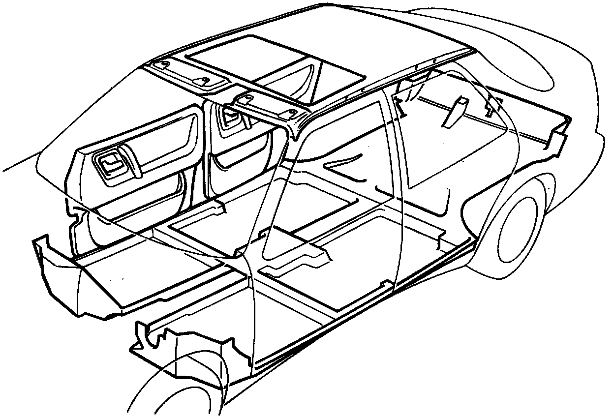 The door trim is constructed of moulded panels covered with plastic sheeting and fabric or leather.