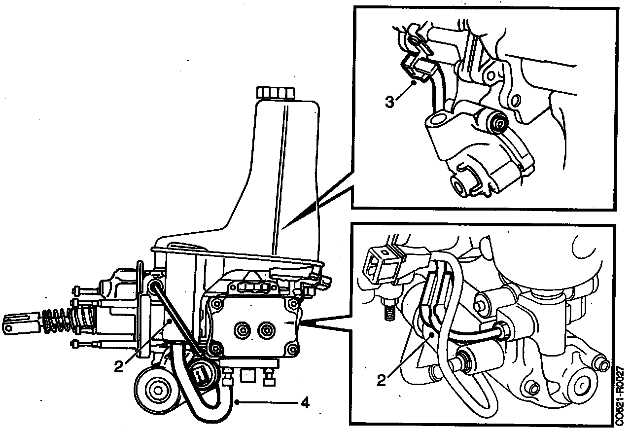 - When changing the high-pressure pump/electric motor, it is advisable to remove the pressure accumulator before the hydraulic unit is removed from the car.