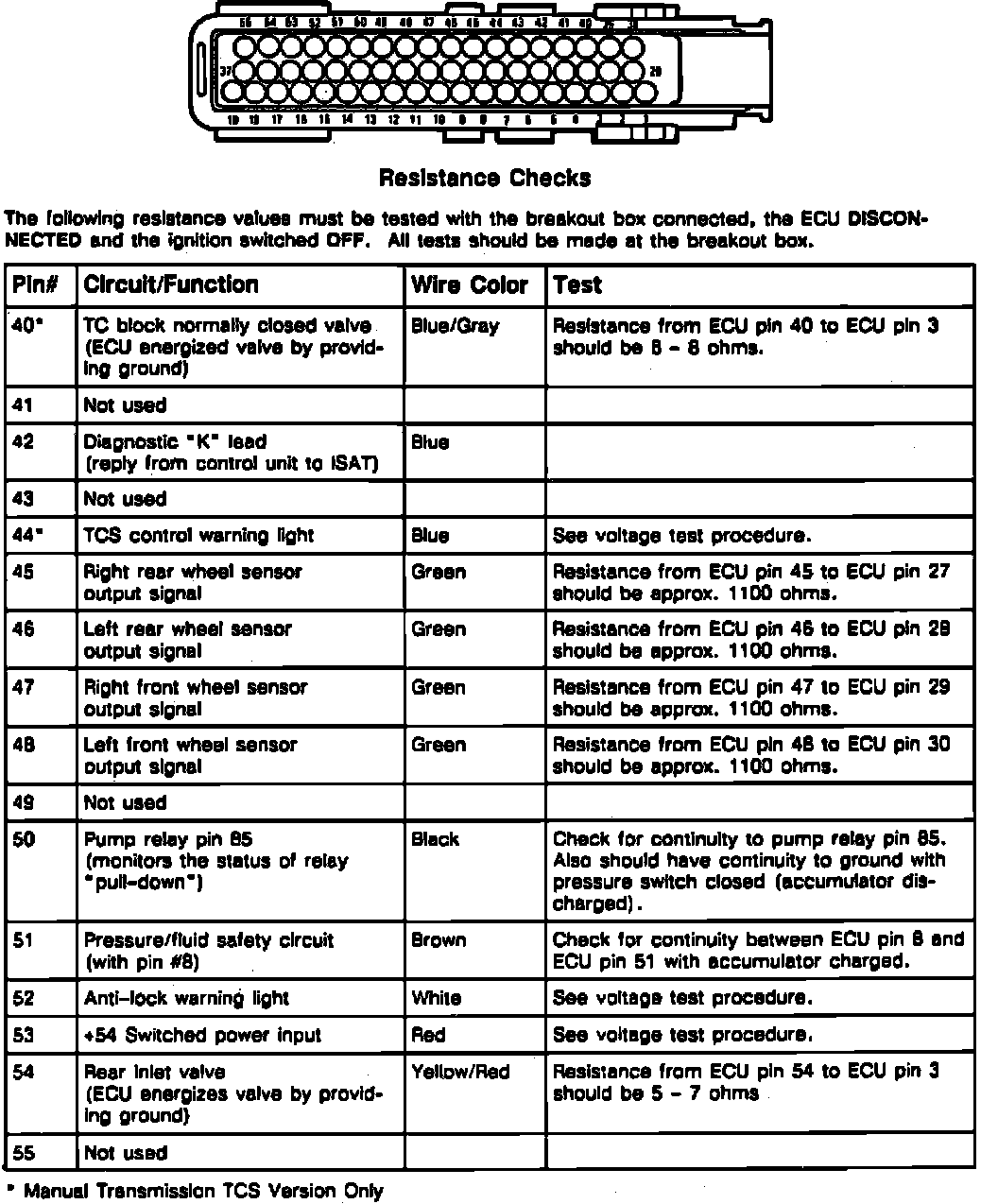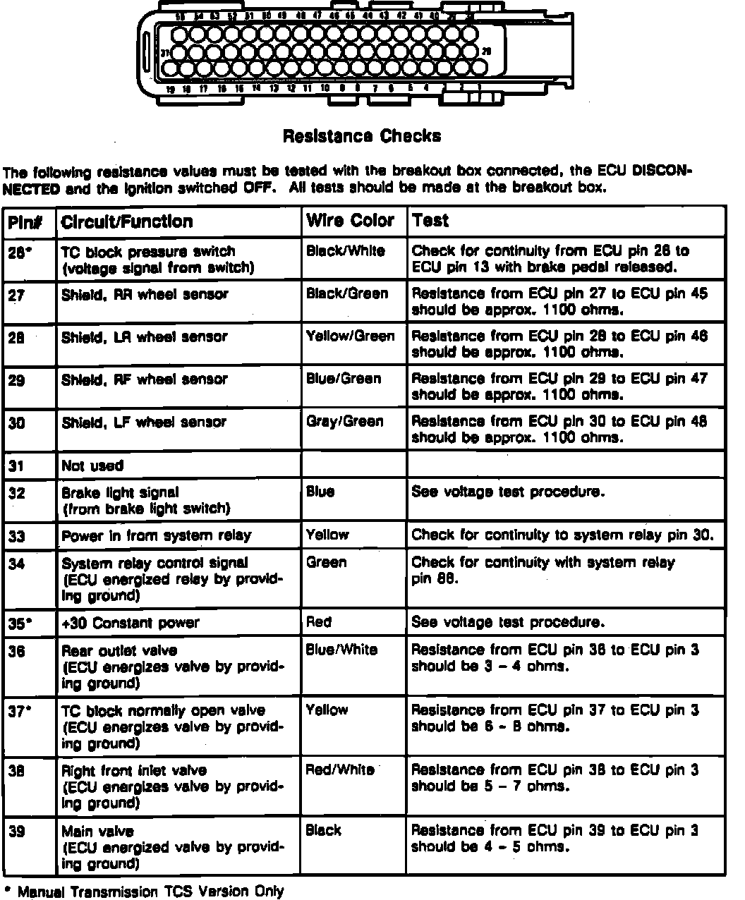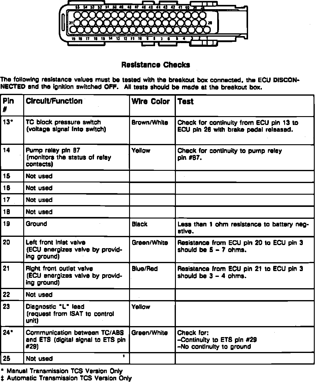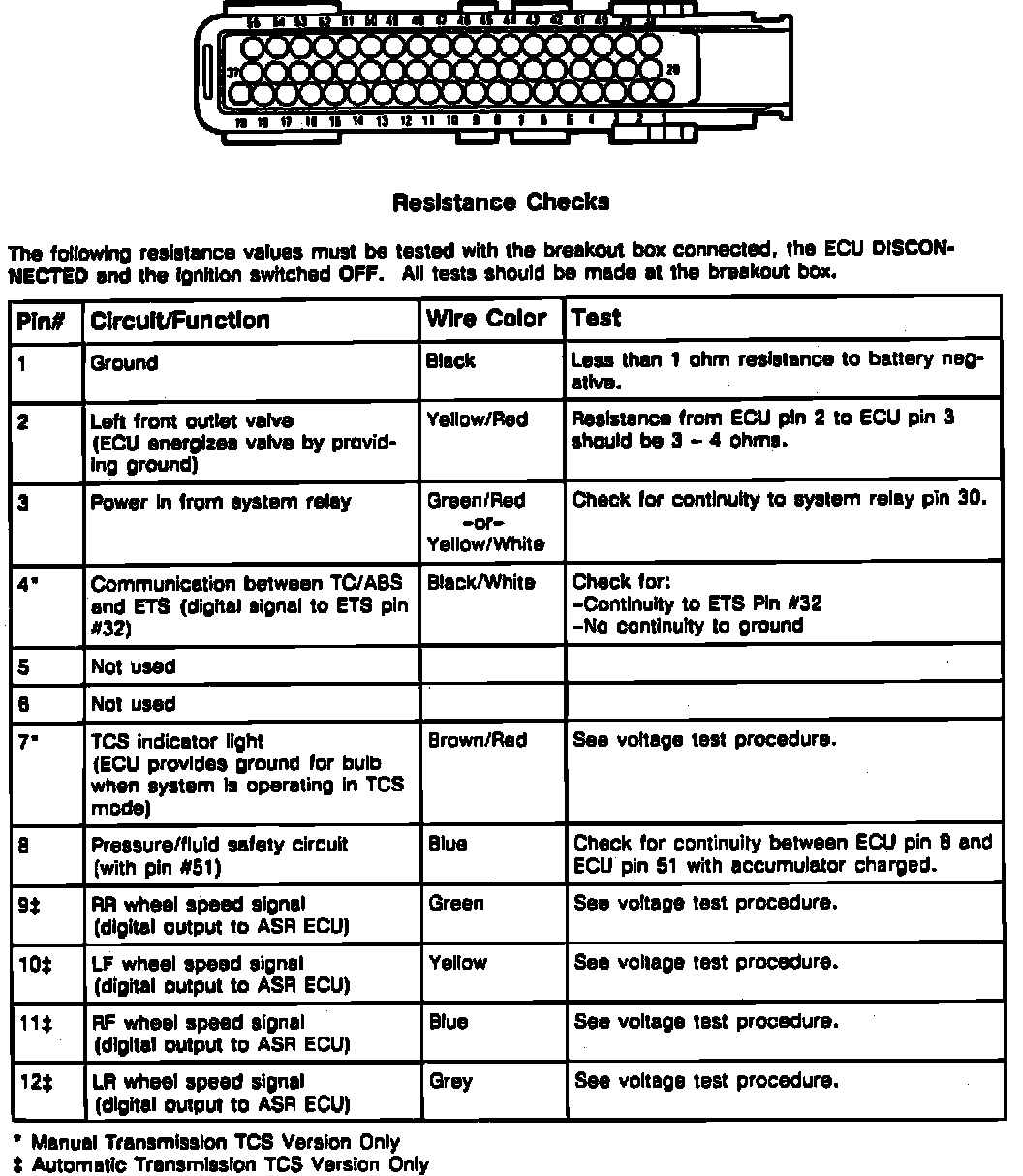 Fig. 7 TC/ABS Control Unit Pin Resistance Check (Part 1 Of 4):