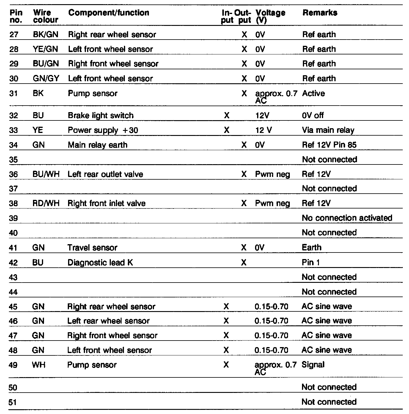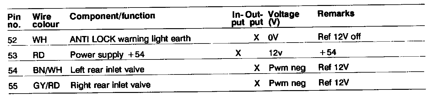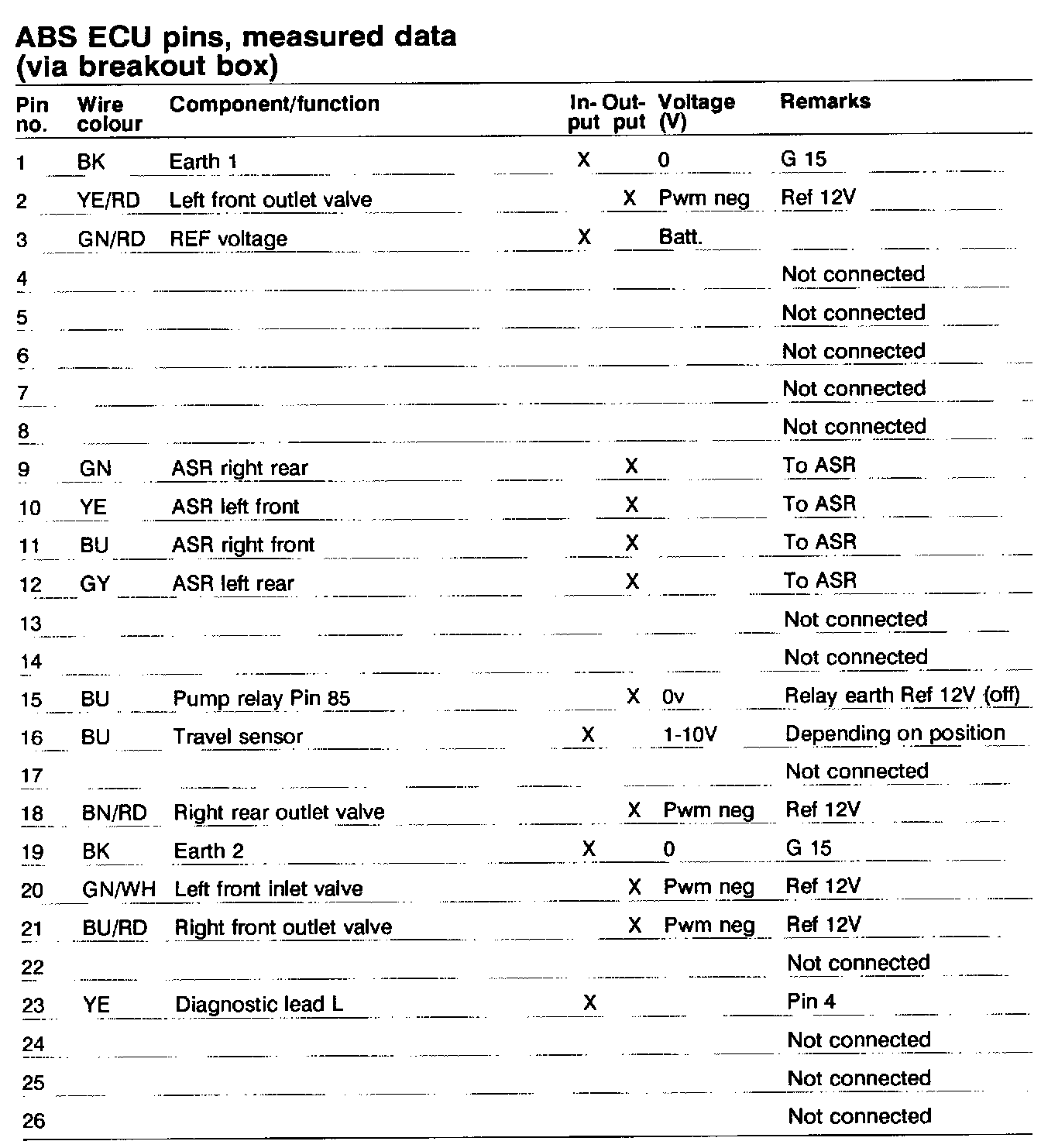 Pinout Values and Diagnostic Parameters