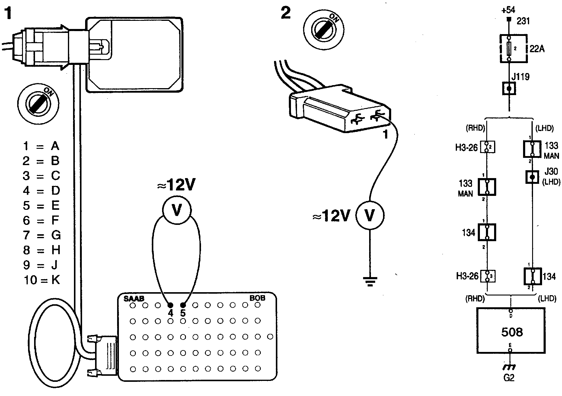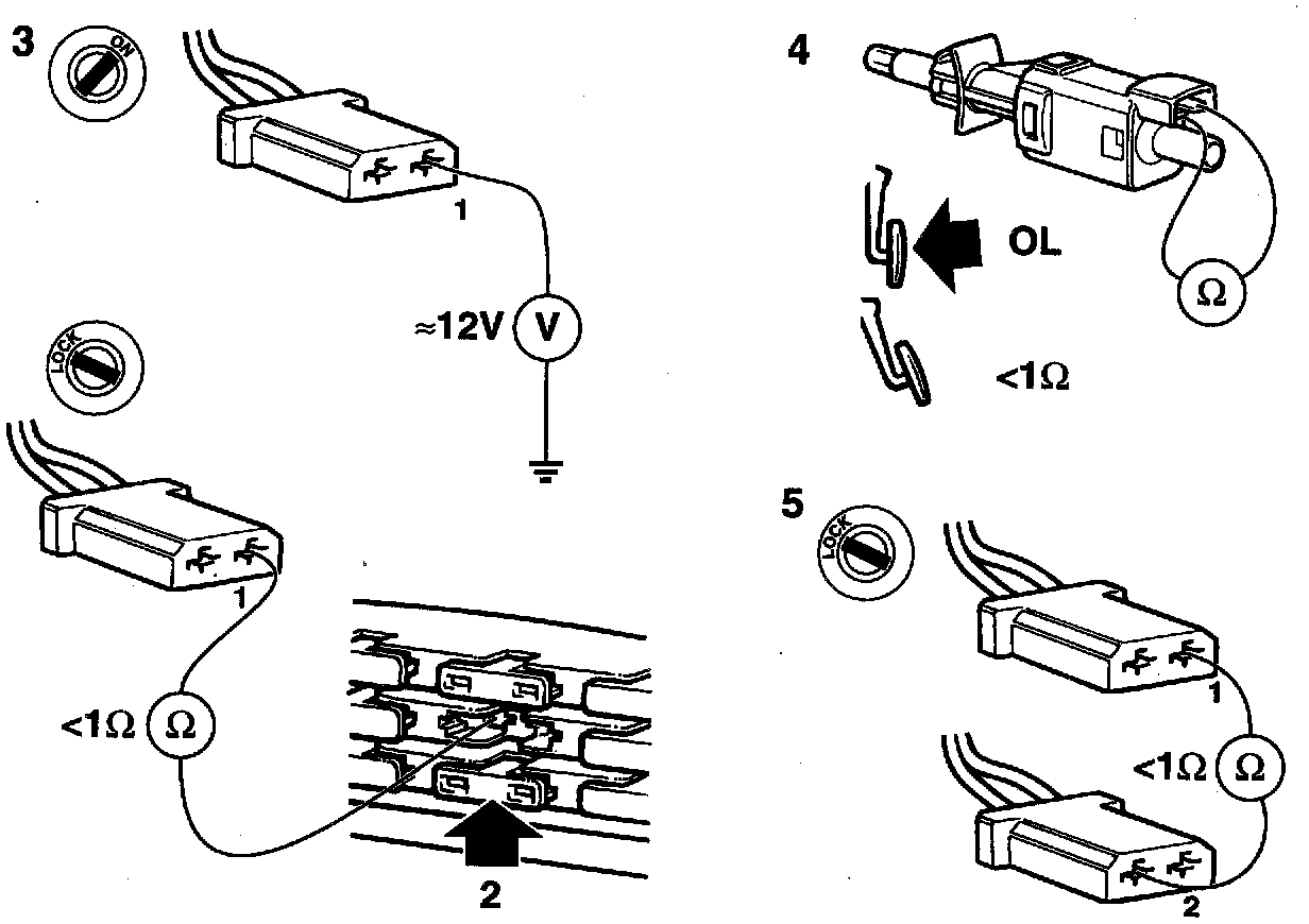 2 If the voltage is not OK, check that about 12 V is present across pin 1 of the brake pedal switch connector and a good ground.