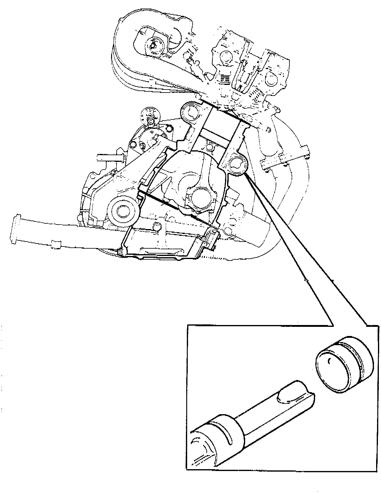 The block is of a totally new design, with the top and bottom faces being parallel. The height, measured from the center line of the crankshaft to the mating flange for the cylinder head. The block is a special one-piece casting with the cylinders bored in the block. Special oil-ways for the lubricating system are also drilled in the block. Incorporated in the sides are the balance shafts, the inner journals of which run in aluminum bearing shells, press-fitted in the block, which can be replaced without the need for any machining.