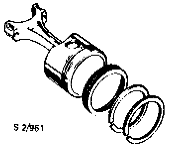 The pistons are made of light alloy and have grooves for two compression rings and one oil scraper ring.
