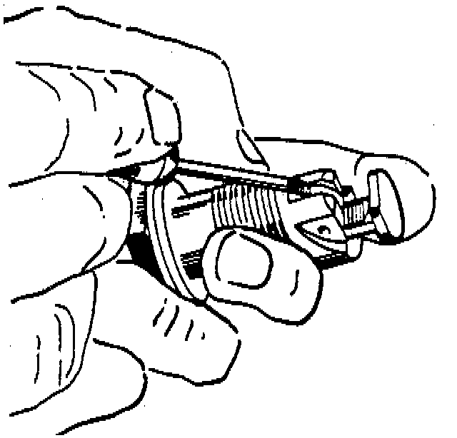 1. Cock the tensioner unit by pressing down on the ratchet and pushing in the tensioner.