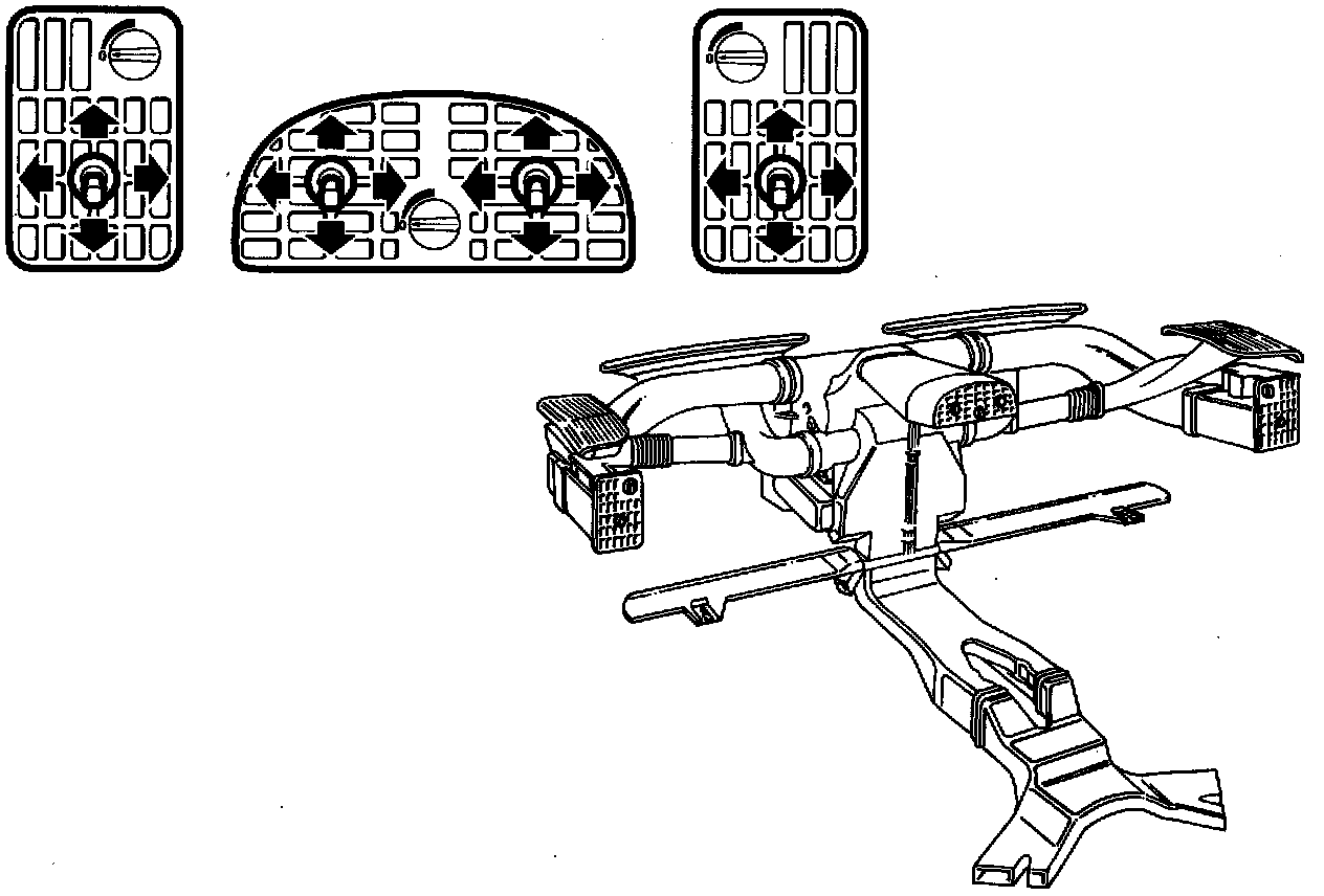 There are four floor vents, of which two are for the rear floor. On year model 1988, front floor ducts were added with four separate air vents as well as rear door fans (not illustrated) for demising the rear windows.