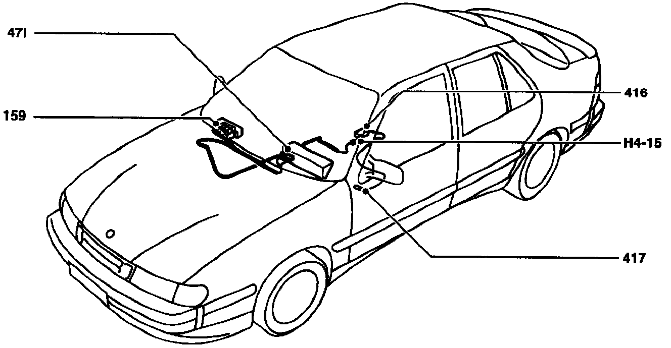 416 Relay, EXH warning, located on a bracket behind the front seat member on the right-hand side.
