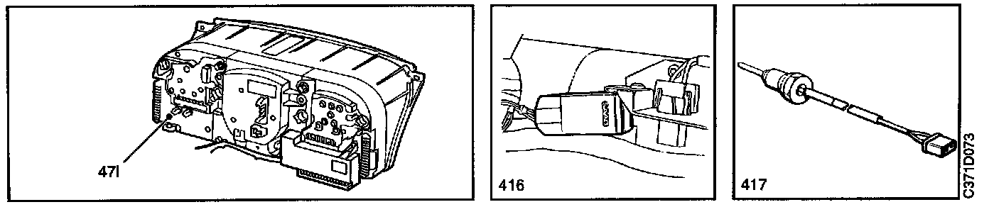 417 Temperature sensor, EXH, on the three-way catalytic converter.