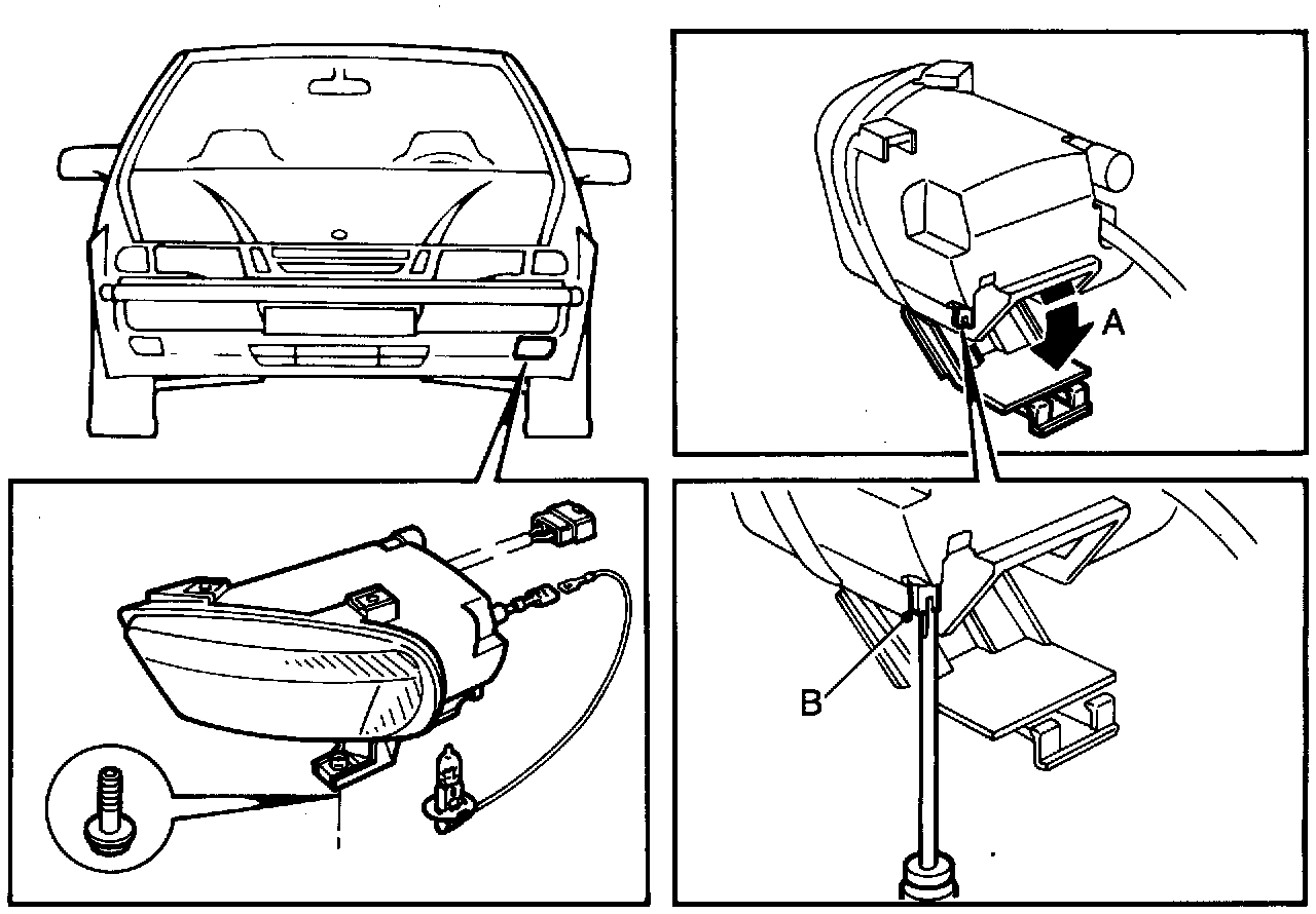5 Bend down the spoiler and remove the fog light (3 screws).