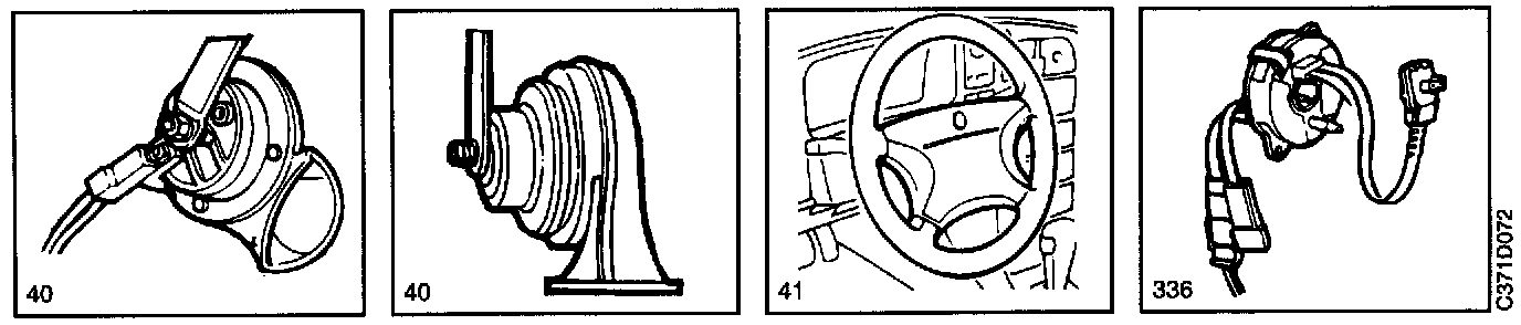 41 Horn switch behind the steering wheel centre pad.