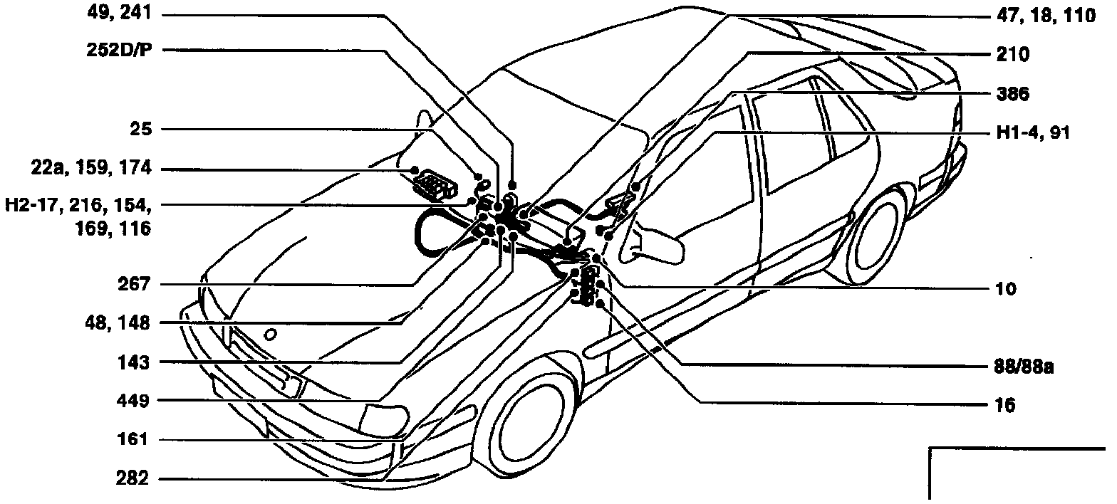 G24 Grounding point, right-hand seat member, under the right-hand front seat.