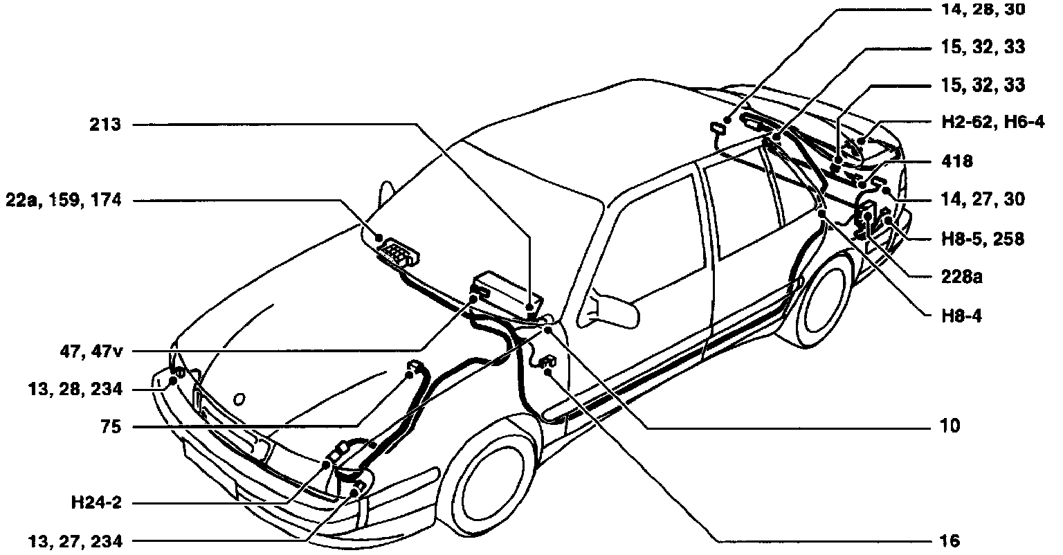 255 (H8-5) Connection for trailer lighting, in luggage compartment on the left under the rear light cluster.