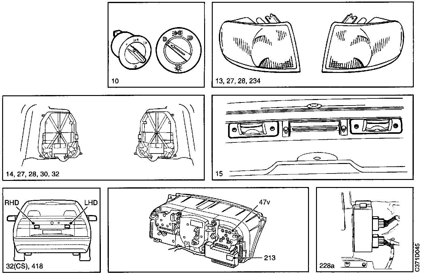 28 Direction indicator lamps, right-hand side, in front and rear light clusters.
