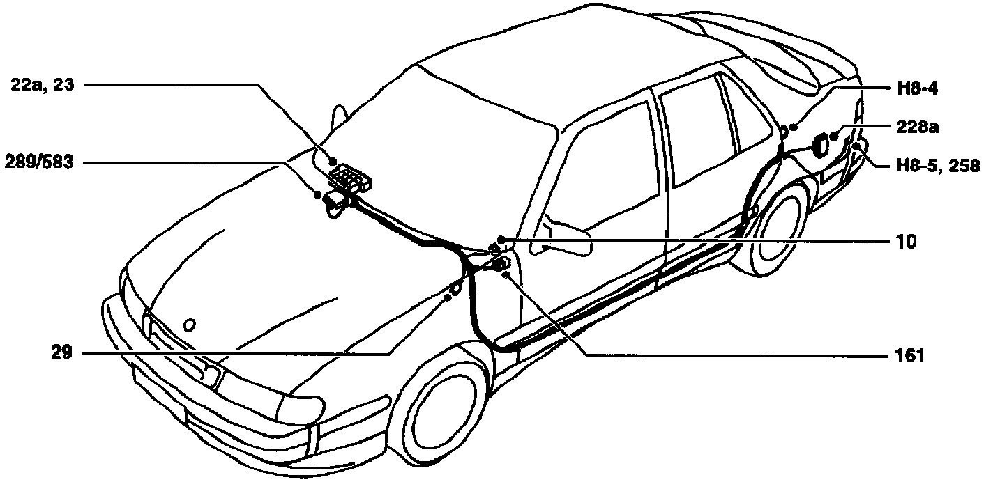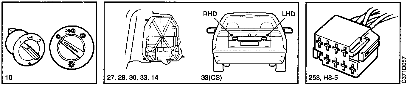 258 (H8-5) 8-pin connector for trailer lighting, in luggage compartment below the left-hand rear light cluster.