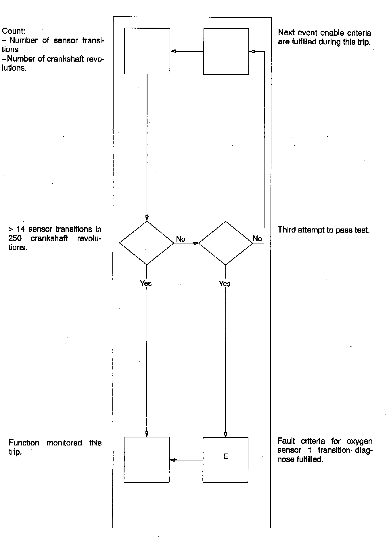 The number of sensor transitions taking place during 250 engine revolutions is counted. If the number exceeds 14 the diagnosis is OK If the number of transitions is less than 14, two additional attempts to obtain a "diagnosis OK" result this trip will be made.