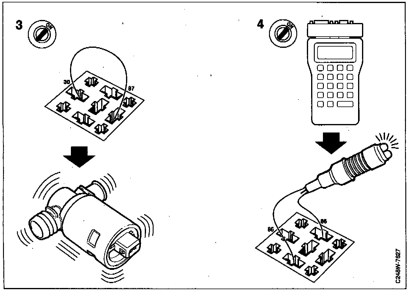 ^ Neither the main relay nor the idle air control valve clicks. Continue with point 4.