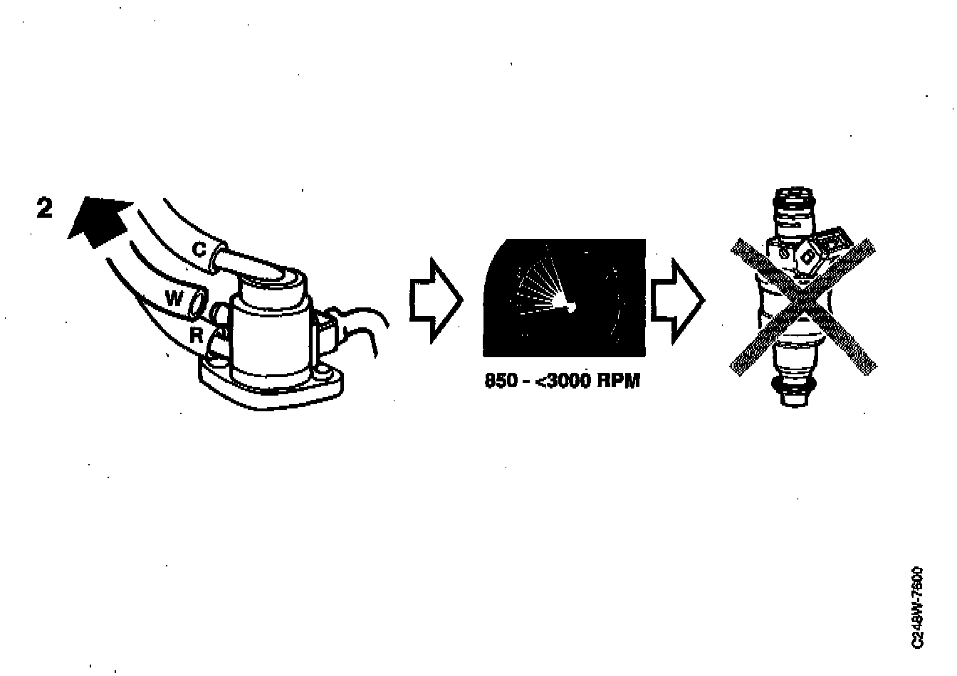 When driving at wide open throttle from low engine rpm, the pressure switch should open before 3000 rpm is attained.