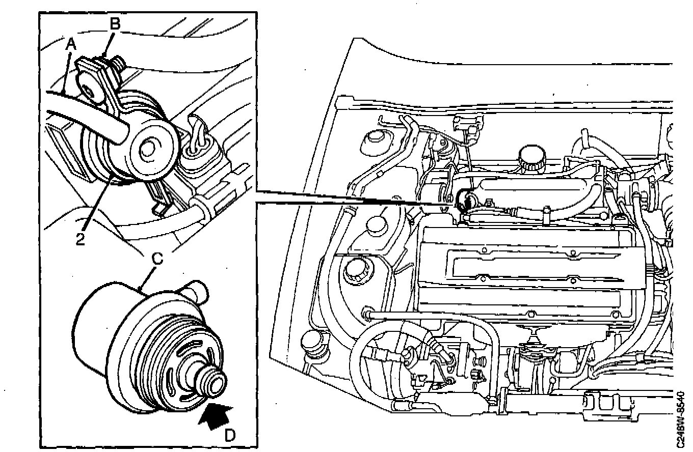 1. Start by cleaning the area round the regulator and then disconnect the vacuum hose (A).