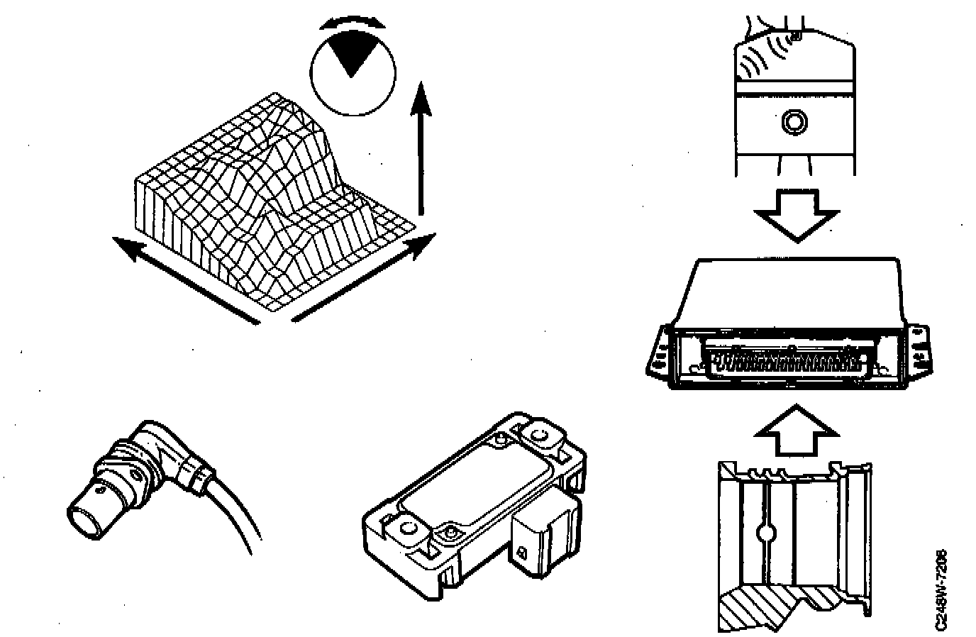 The crankshaft position sensor consists of an inductive sensor mounted in the crankcase wall of the engine. The rotor is a perforated ring with 58 ribs mounted on the rear counterweight of the crankshaft.