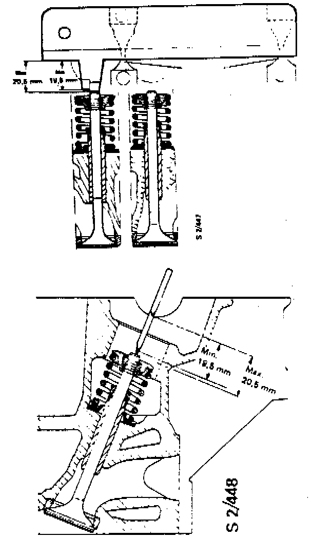 ^ If the valve clearance deviates from the specified checking values, adjustment must be made to the valve stem or the valve seat: if the value is lower than the minimum value then the length of the valve must be reduced; if the value is greater than the maximum value, then the valve seat must be milled. The nominal value for adjusting the position of the valve is 20.2 mm (0.795 inch).
