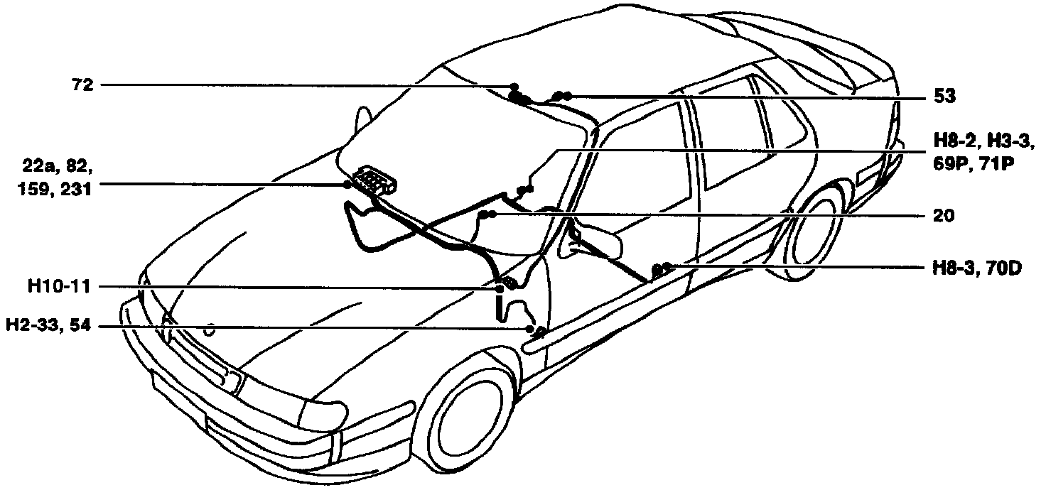 69P Seat switch, passenger seat-belt warning lamp, under the passenger's seat.